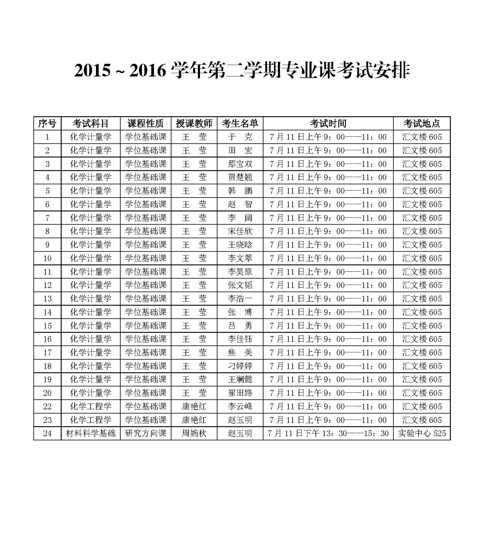1.研究生专业课期末考试日期为2016711日全天,具体安排详见附件。
