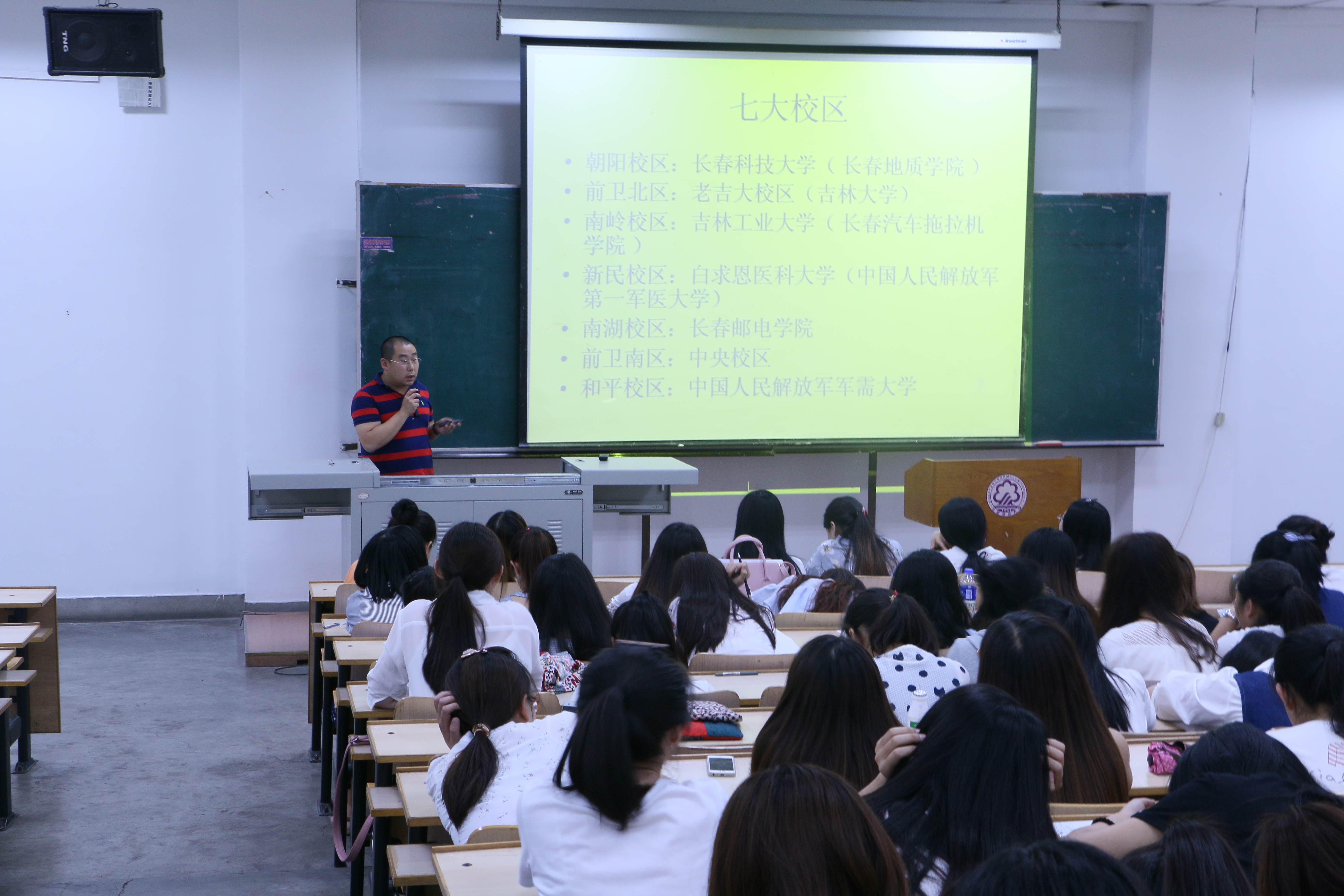 汤兑海老师向同学们讲述了自己在美国留学时的学习和生活情况