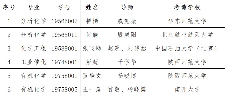 今年,公司2022届共有6名硕士研究生经过导师精心指导、自身刻苦努力,顺利考取国内知名院校博士研究生。具体名单如下: