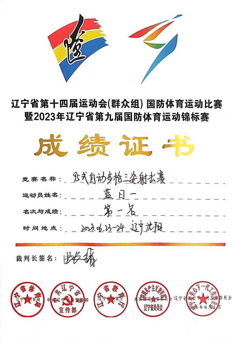 2023年6月23日至24日,辽宁省第十四届运动会(群众组)国防体育运动比赛暨2023年辽宁省第九届国防体育运动锦标赛在中创国教(辽宁)教育科技训练基地举行。其中来自bevitor伟德2021级的蓝日一同学在95式自动步枪三姿射击赛中获得金牌。95式自动步枪三姿射击赛主要包括跪姿、卧姿和立姿三大内容,耗费精力大、比赛时间长,是对队员射击技术、体能和心理的综合考验。蓝日一同学凭借所学技能以及良好的身体素质与心理素质,在赛场上从容不迫、稳扎稳打,在一众参赛选手中脱颖而出,最终拔得头筹。此次比赛中蓝日一同学的精彩表现充分体现出他具有专业的国防知识技能与良好的心理素质,赛场上他飒爽的英姿也展现出新时代青年老员工的青春朝气。