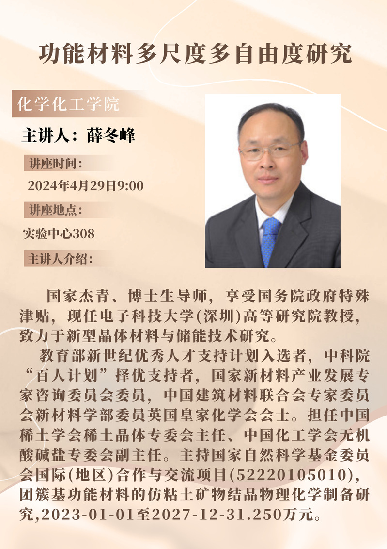薛冬峰教授学术报告预告:功能材料多尺度多自由度研究