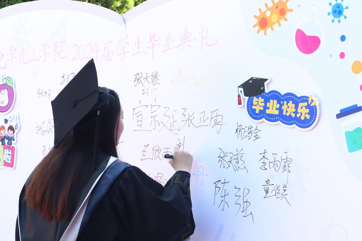 毕业生在签名墙留念